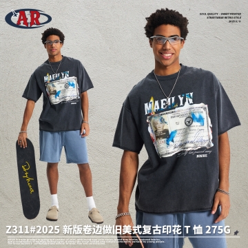 [商场同款]gxgjeans男装2018夏新款刺绣印花短袖t恤男潮182644065